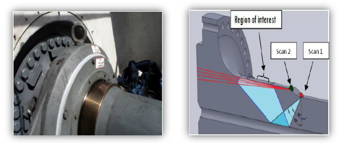 使用相控陣探頭放置在可接觸到的軸外側,可對由于軸套的存在而無法接觸到的軸外表面裂紋進行檢測。