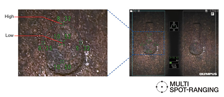 IPLEX NX擁有獨特的多點物距測量功能,能夠實時測量從內窺鏡到檢查表面上多個點之間的距離。該功能提供了實時表面信息,不會暫停或中斷檢查。