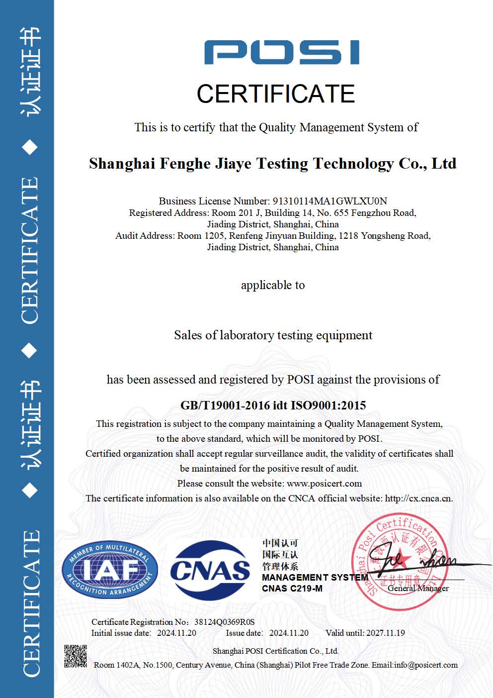 質量管理體系認證證書(英文版)
